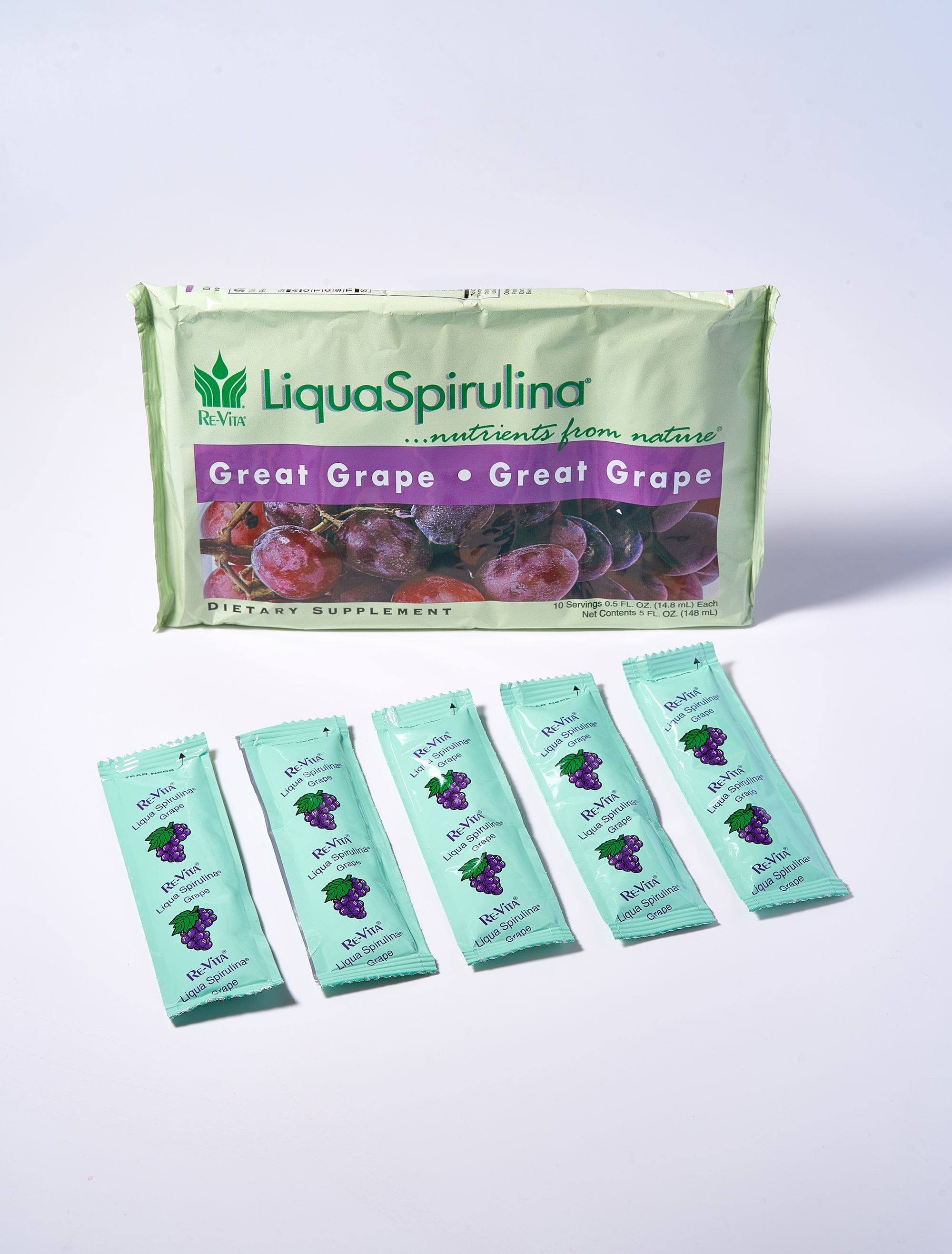The exclusive ingredients in LiquaHealth are what makes it different and better. The basis for LiquaHealth is spirulina, a blue-green aquatic algae which may be the most nutritious plant in existence. Re-Vita’s spirulina is nurtured in freshwater ponds. It is grown where the desert heat, high intensity of sunlight and a clean water source ensures a high-quality spirulina that is free of lead, mercury, and other contaminants. Natural vitamins are developed into the plant through a photosyntheticprocess. Because your body recognizes LiquaHealth as a food, it is easily absorbed and retained.